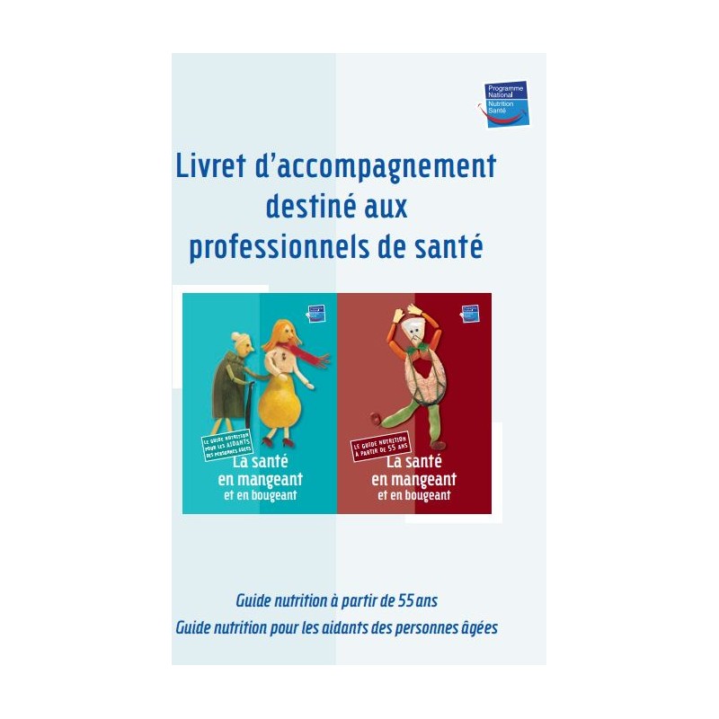 Guide nutrition à partir de 55 ans Guide nutrition pour les aidants des personnes âgées Ce livret, destiné aux professionnels de santé, accompagne deux autres guides destinés au grand public : l’un pour les personnes à partir de 55 ans sans problème de santé majeur ou perte d’autonomie et le second pour les aidants, familiaux ou professionnels (auxiliaires de vie, etc.) des personnes âgées fragiles. Conçu dans le cadre du PNNS, il fait le point sur les connaissances scientifiques liées à la nutrition des personnes âgées et donne des conseils pratiques à adapter à la situation des patients.