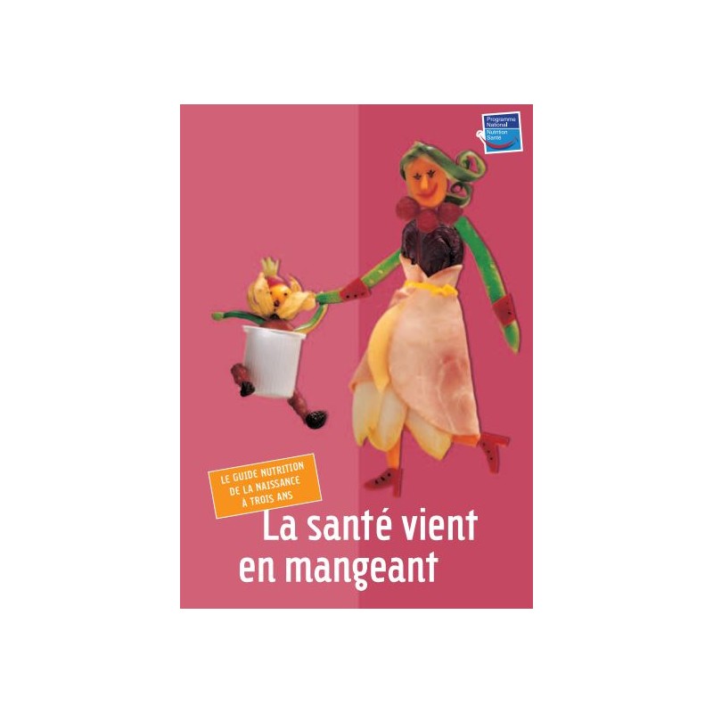 La santé vient en mangeant Cette brochure est extraite du Guide nutrition des enfants et ados pour tous les parents, dont elle reprend la première partie consacrée à la petite enfance. Editée pour une diffusion en maternité auprès des jeunes mères, lors de l’entretien du 9e mois ou juste après l’accouchement, cette brochure est cependant téléchargeable sur ce site.