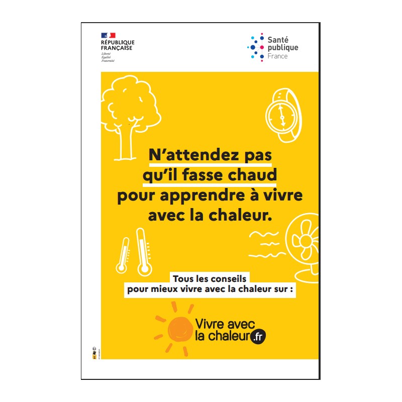 Cette affiche renvoit vers le site internet vivre-avec-la-chaleur.fr recençant conseils et astuces pour apprendre à mieux vivre avec la chaleur.