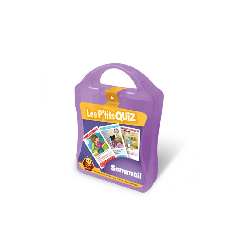 Les P’tits Quiz Sommeil est une adaptation du jeu de 7 familles « Sommeil en famille ». Dans ce jeu vous trouverez 2 modes de jeu supplémentaires en plus du mode de jeu 7 familles. Découvrez toutes les astuces pour mieux dormir, comprendre l’importance du sommeil, et apprenez de nombreuses informations sur le sommeil en général !