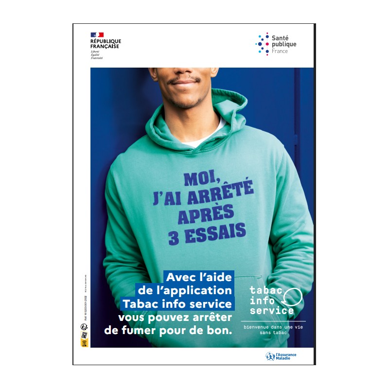 Cette affiche vise à normaliser les tentatives d'arrêt du tabac comme une étape du sevrage. En effet, chaque tentative est un pas vers l'arrêt définitif. Elle promeut également l'application Tabac info service pour être aidé et arrêter de fumer pour de bon.